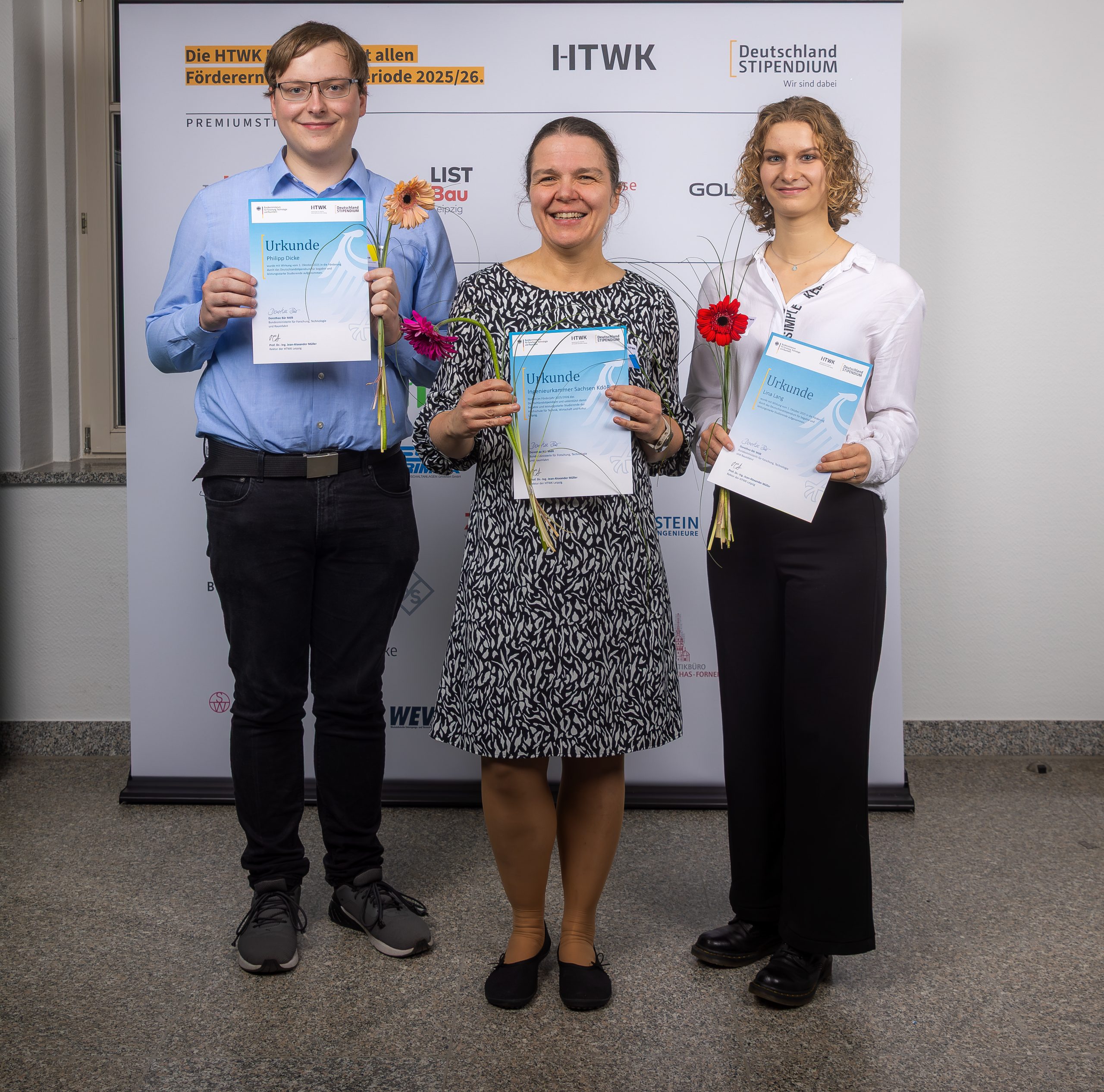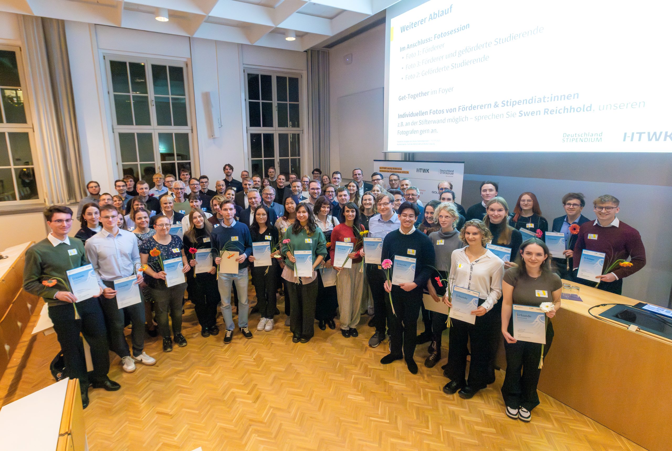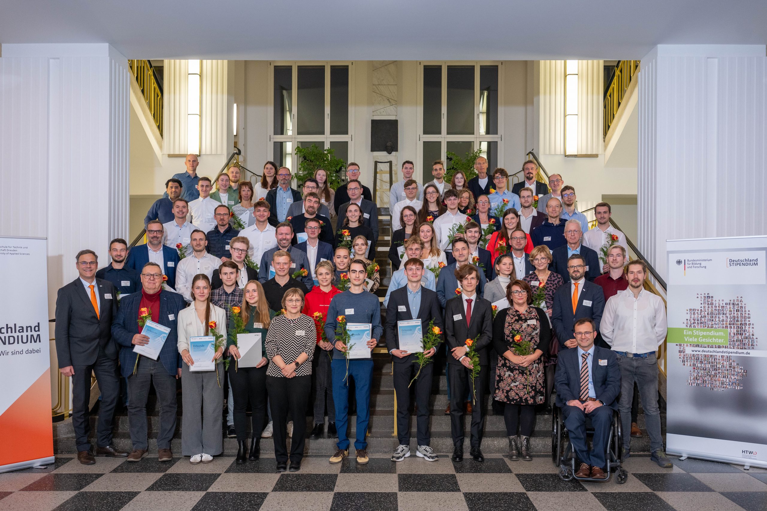 Zur feierlichen Übergabe am 13. November von 48 Stipendien an der HTWK Leipzig sowie 43 Stipendien an der HTW Dresden würdigten die Rektoren beider Hochschulen das Engagement und die Unterstützung der Fördernden sowie der Stipendiaten. Am 30. Januar 2026 fand an der Technische Universität Dresden die Stipendienfeier mit über 300 Studierenden und Förderern statt. Mit 376 vergebenen Stipendien wurde erneut ein Höchststand an der TU Dresden erreicht. Neben der feierlichen Zeremonie bieten die Vergabefeiern eine gute Gelegenheit zum persönlichen Kennenlernen und Austausch zwischen Geförderten und Fördernden.